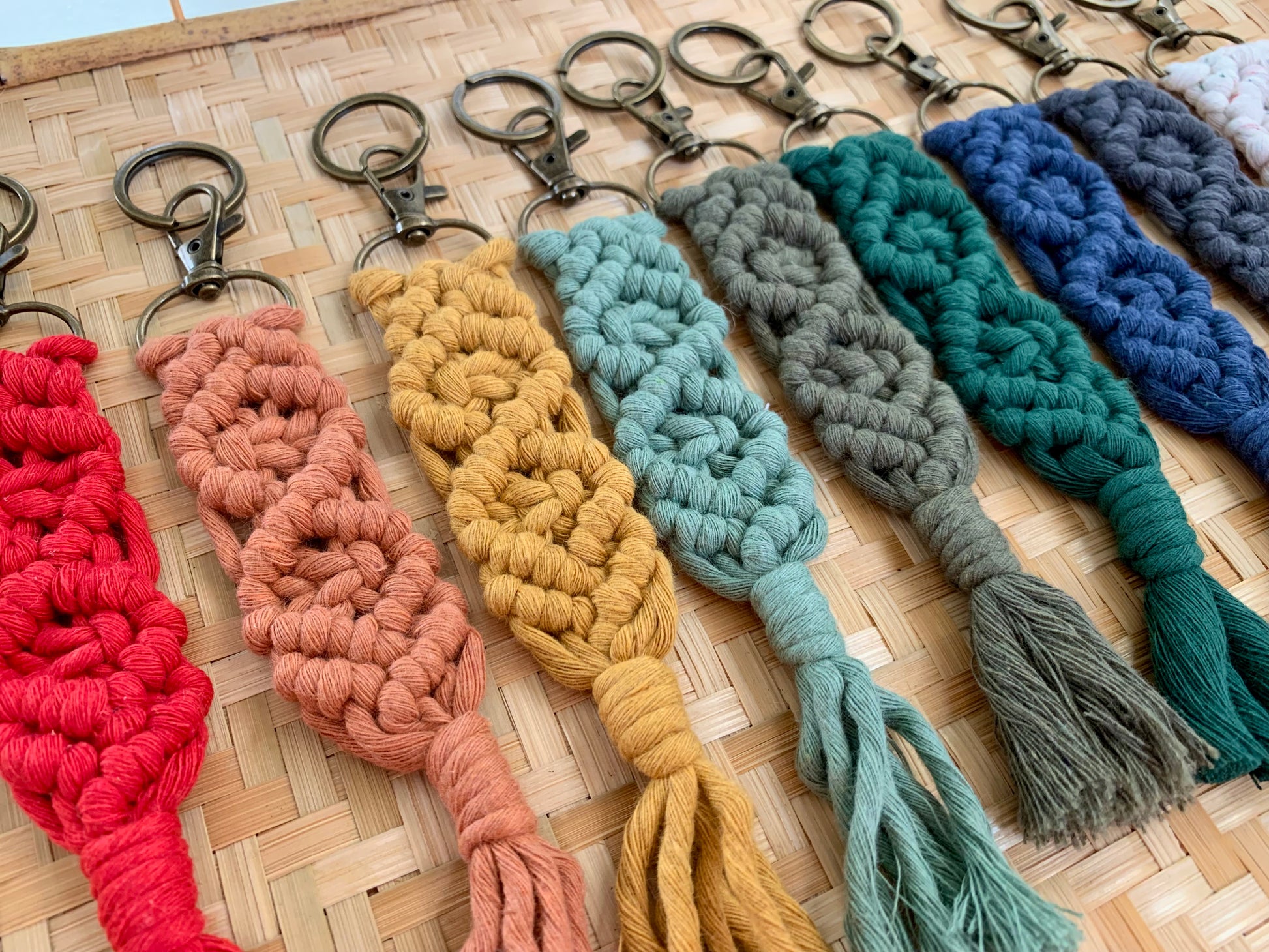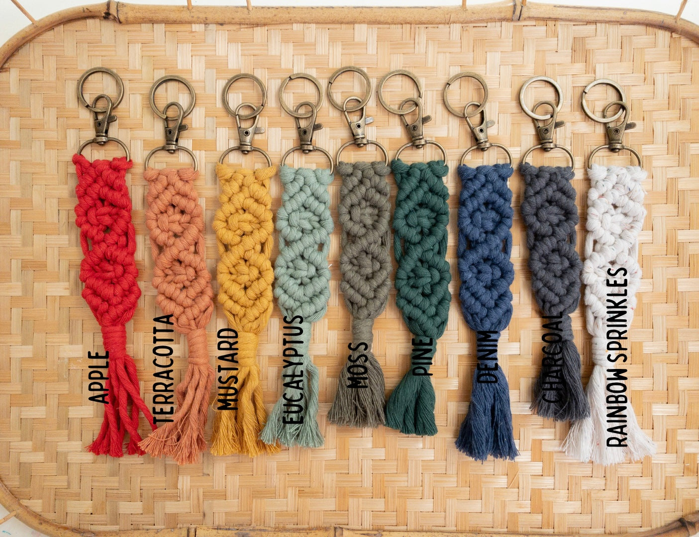Super cute macrame keychain or whatever else you can dream up using the versatile lobster clasp. Including the clip, keychains are approx x in long. Made with recycled 100% OEKO-TEX-certified cotton cord and lots of love.